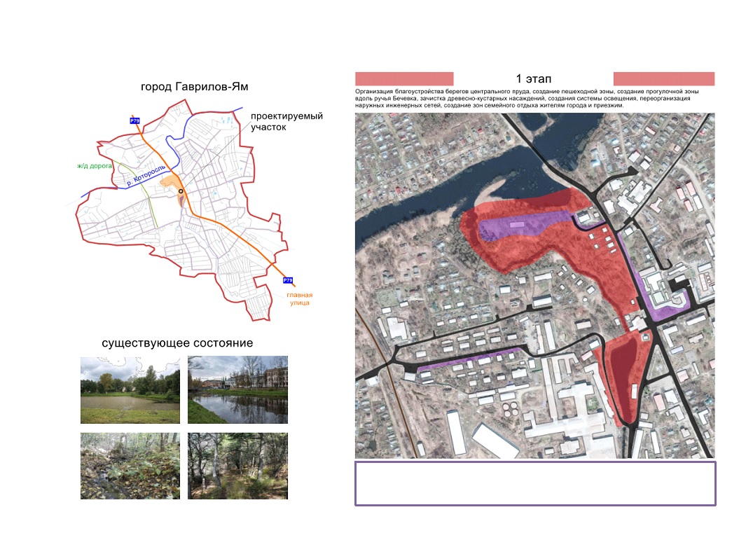- для благоустройства определить компактную и четко выраженную территорию, которая включает в себя пойменную часть р.Бочевка и городской пруд на ул.Патова. Территория расположена в самом центре города в окружении значимых объектов.